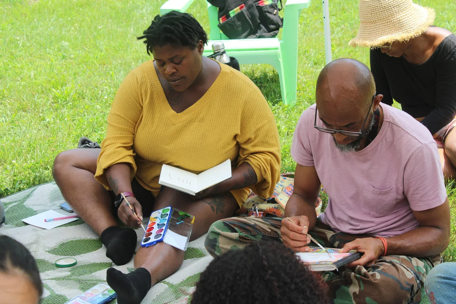 Session #1: Participants and Mumbet’s Freedom Farm reflecting and painting.