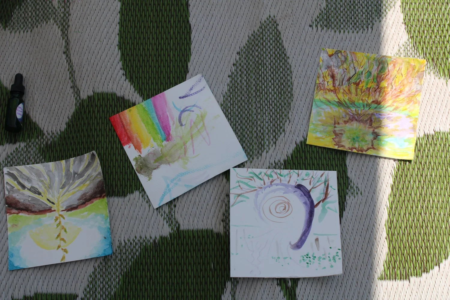 Session #1: A snapshot of some of the cotton meditation paintings.