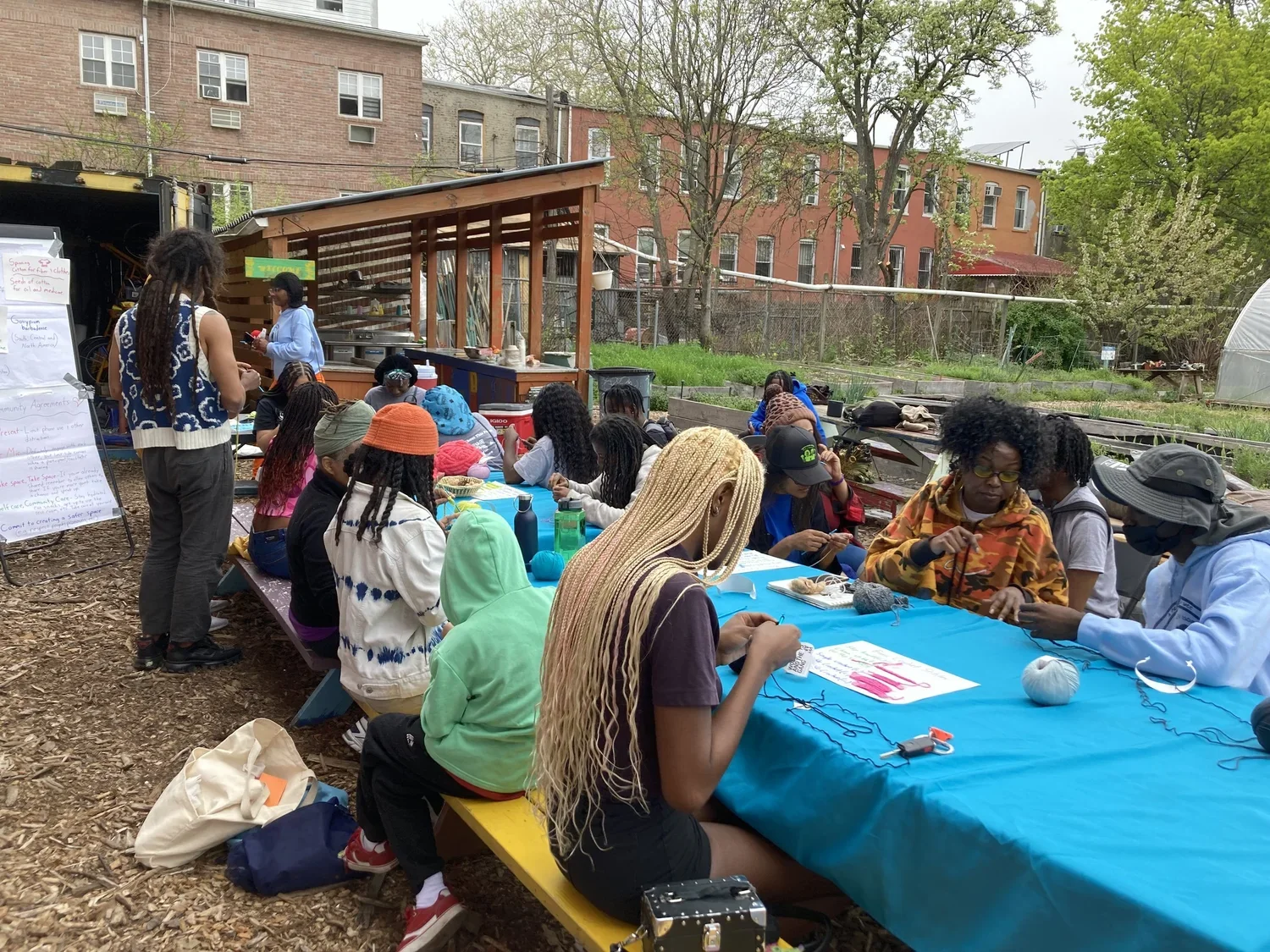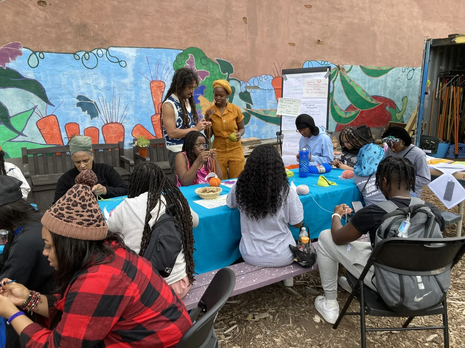 Participants beginning to crochet after an introductory discussion grounded in cotton’s Afro and Indigenous journeys to us.